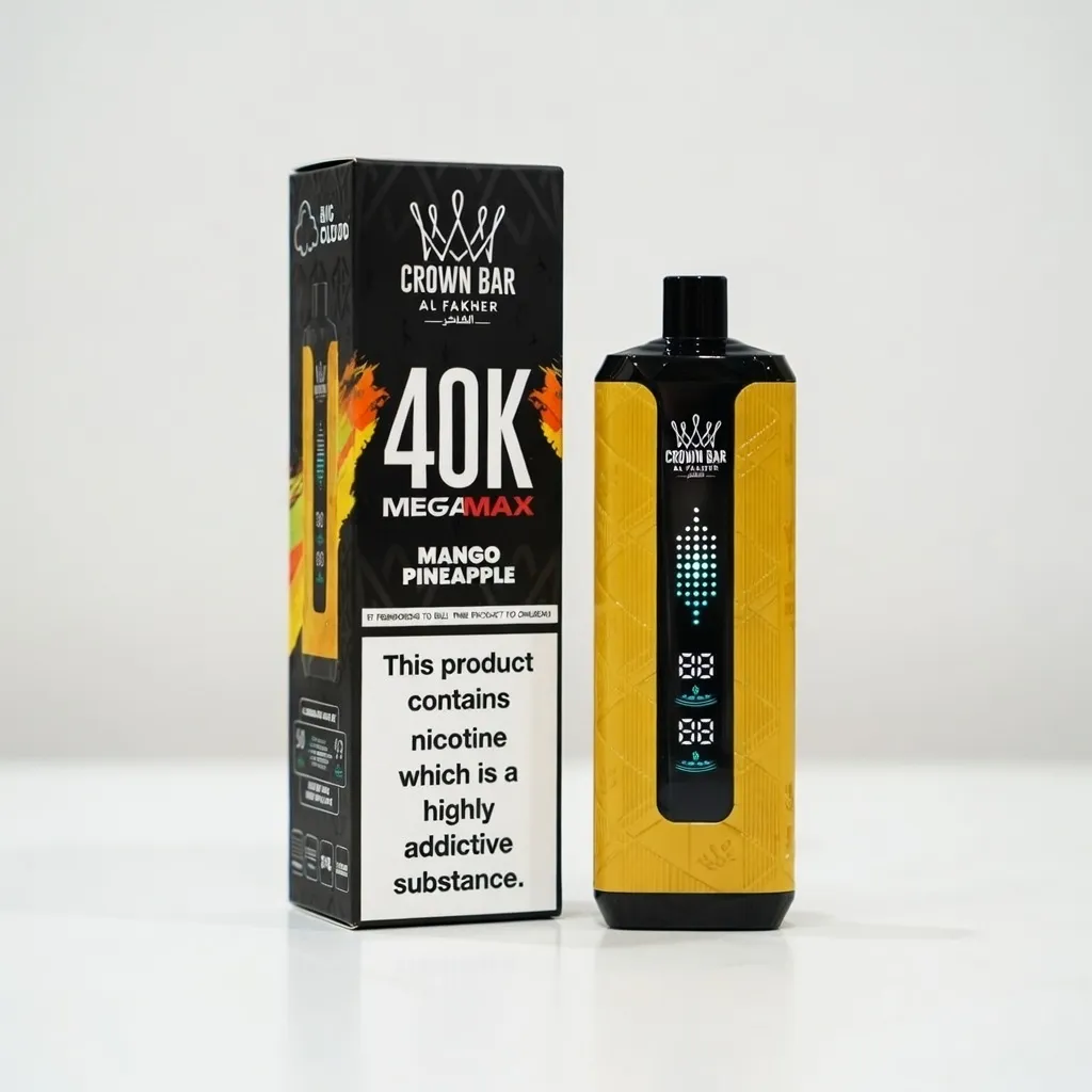 Discover the ultimate vaping experience with the Crown Bar Mango Pineapple  40,000 Puffs 5mg DTL in Dubai, UAE. This disposable vape device offers 40,000 puffs of pure satisfaction, powered by a 600mAh battery for long-lasting enjoyment.