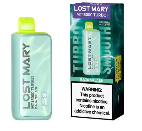 LOST MARY TURBO Baja Splash 50mg is a powerhouse of flavour and performance. With an impressive 16mL vape juice capacity, this device offers up to 10,000 puffs in turbo mode and an astounding 15,000 puffs in smooth mode. Powered by a reliable 600mAh rechargeable battery, the Lost Mary MT15K Turbo ensures uninterrupted vaping pleasure, made even more convenient with its Type C charging capability.