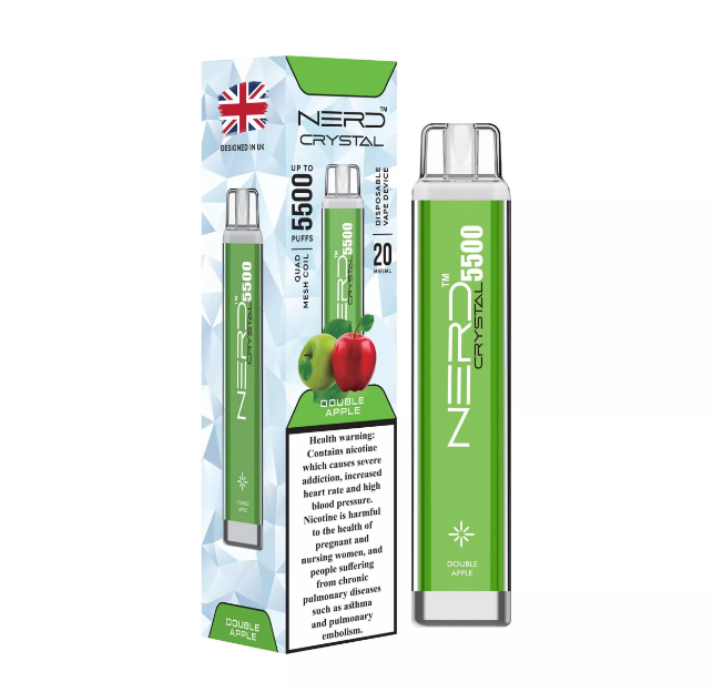 This NERD Crystal Double Apple can vape up to 5500 puffs. Pre-loaded with 12ml of our award- winning e-liquids. Pre-charged pure cobalt battery. Ready to use instantly right out of the box available at king vape dubai store.
