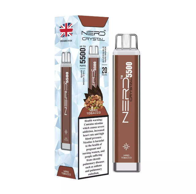 This NERD Crystal Nerd Tobacco can vape up to 5500 puffs. Pre-loaded with 12ml of our award- winning e-liquids. Pre-charged pure cobalt battery. Ready to use instantly right out of the box available at king vape dubai store.