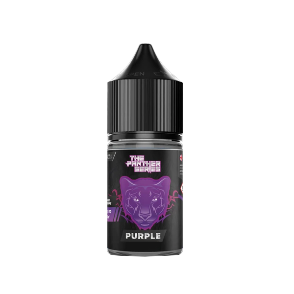 Purple By Panther Series salt E-Liquid by Dr Vapes 50ml  is fresh  a juicy mix of red, green and dark concord grapes. 33% White Grape, 33% Red Grape, 33% Concord Grape on the exhale for a refreshing a sweet vape.